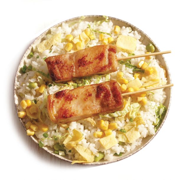 Riz aux brochettes de saumon