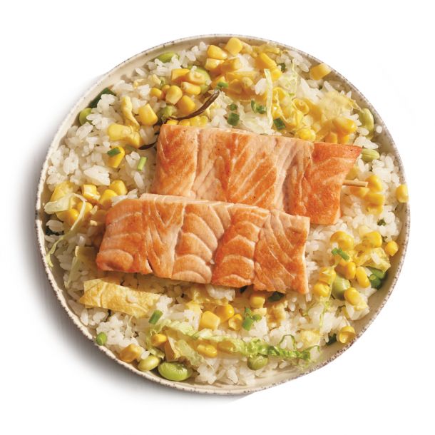 Riz aux brochettes de saumon